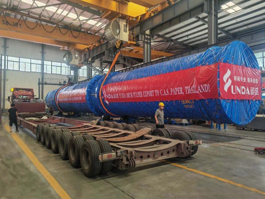 作為泰國 C.A.S. 新聞紙改產(chǎn)包裝紙整線改造項目的核心設備,本次交付的鼓式碎漿機運輸總長約 32 米,運輸總高度約 4.2 米;該項目的鏈板輸送機、散包機、高濃除渣器、砂石分離器、D 型碎漿機、纖維分離機、中濃篩、磨漿機及低濃除渣器均由鄭州運達提供并已提前發(fā)貨完畢。